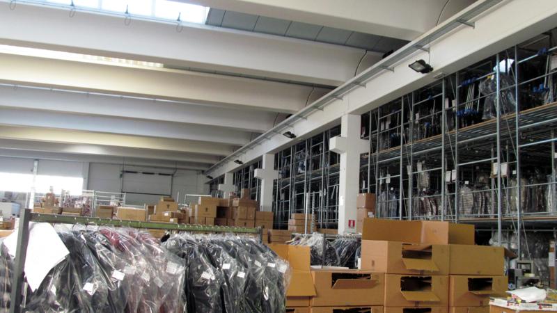 Ampio deposito per capi finiti, appesi o a scaffale. Prelievo su vostro ordine: per taglia-colore; per “famiglie” preallocate per PdV; prelievo per singolo PdV su distinta cliente. Preparazione spedizioni ed etichettatura capi su specifiche cliente finale. Preparazione colli, bauletti o sacchi in appeso con etichettatura per corrieri (integrazione con i principali corrieri)…
